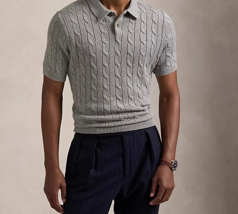 Polo Shirt With Knitted Trim and Knitting