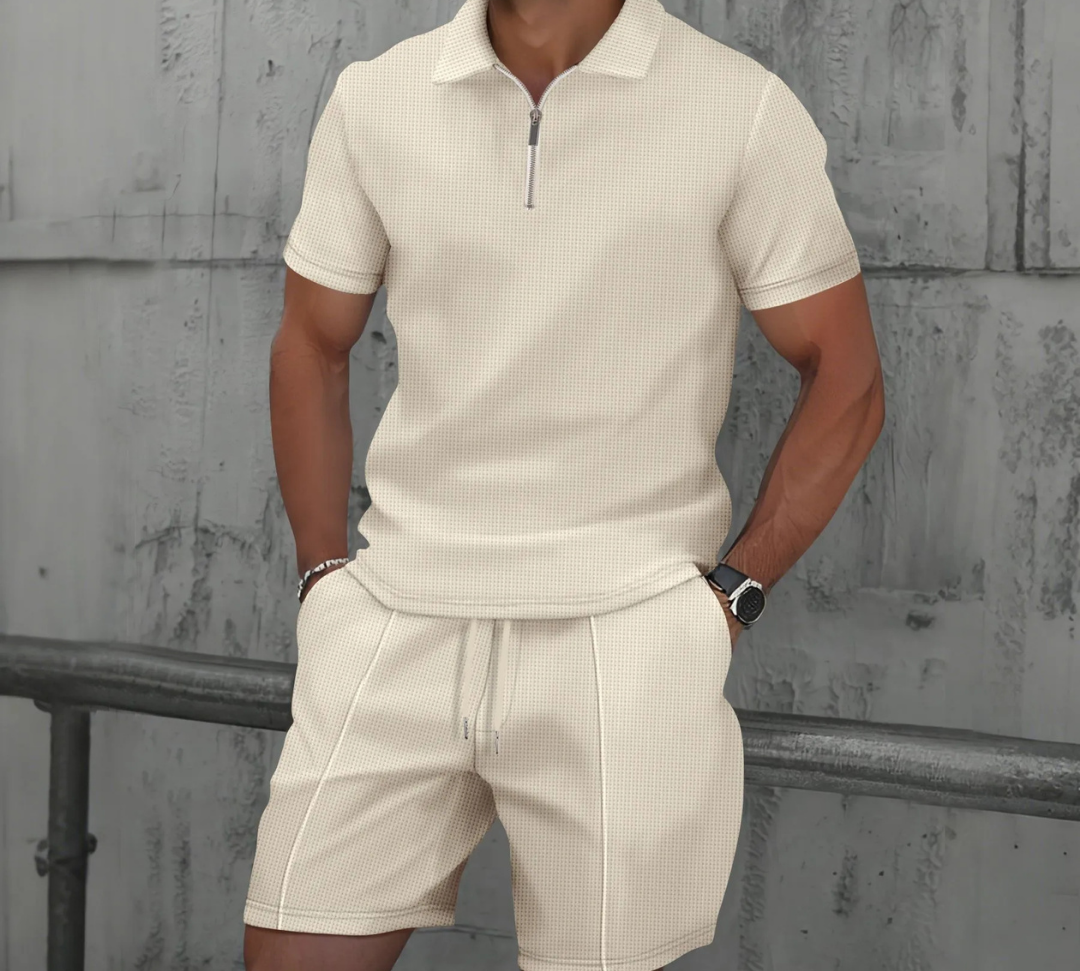 Outliers Zip-Up Polo and Soft Knit Shorts