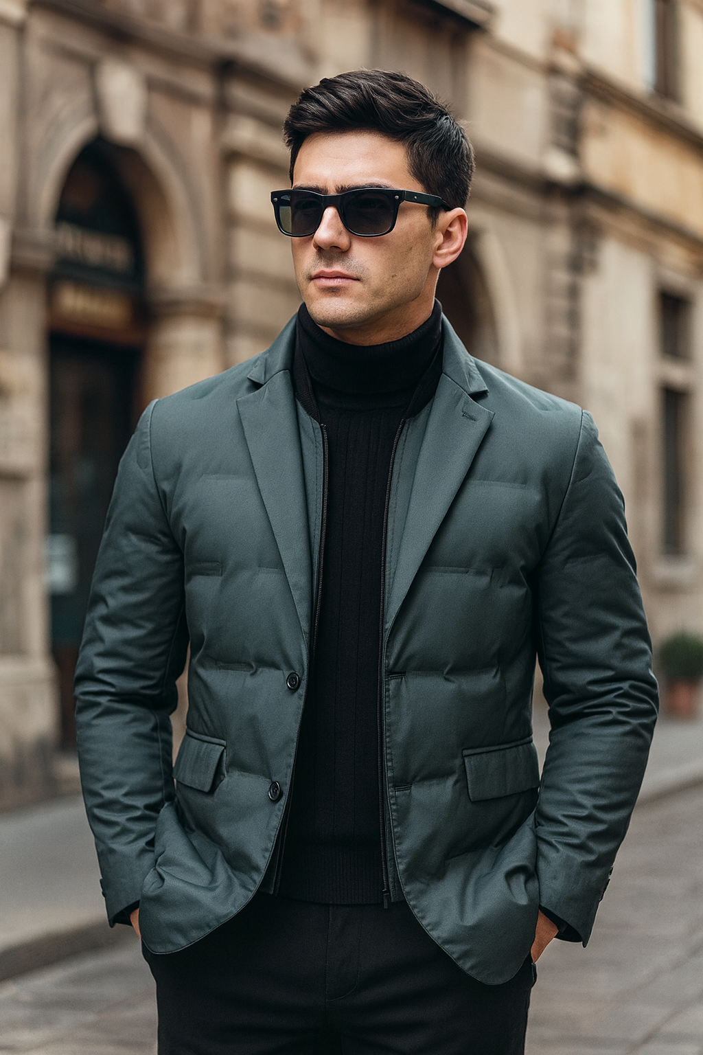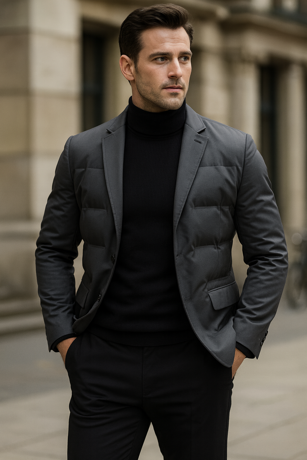 Vestes para reuniões. Para o fim-de-semana. Para viajar. Não precisas de 3 casacos diferentes. Precisas deste. Construído para homens que não transigem: nem no frio, nem na aparência.